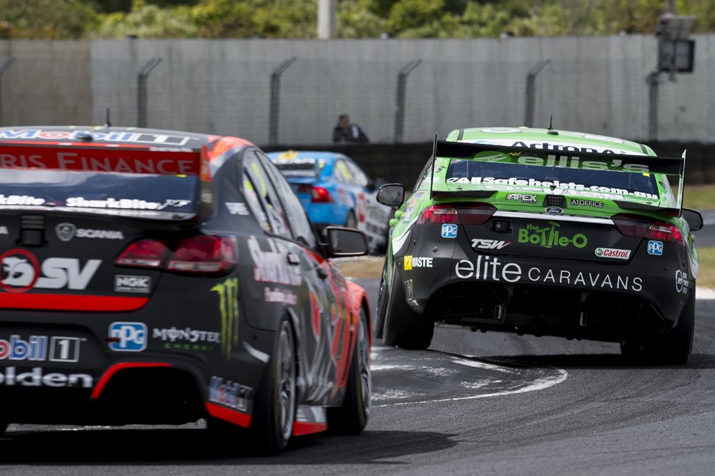 While van Gisbergen started on pole, Whincup made a good start to the second race and the pair of Red Bull cars went wheel-to-wheel for much of the first lap in superb driving as neither driver gave an inch but maintained a healthy respect for each other.