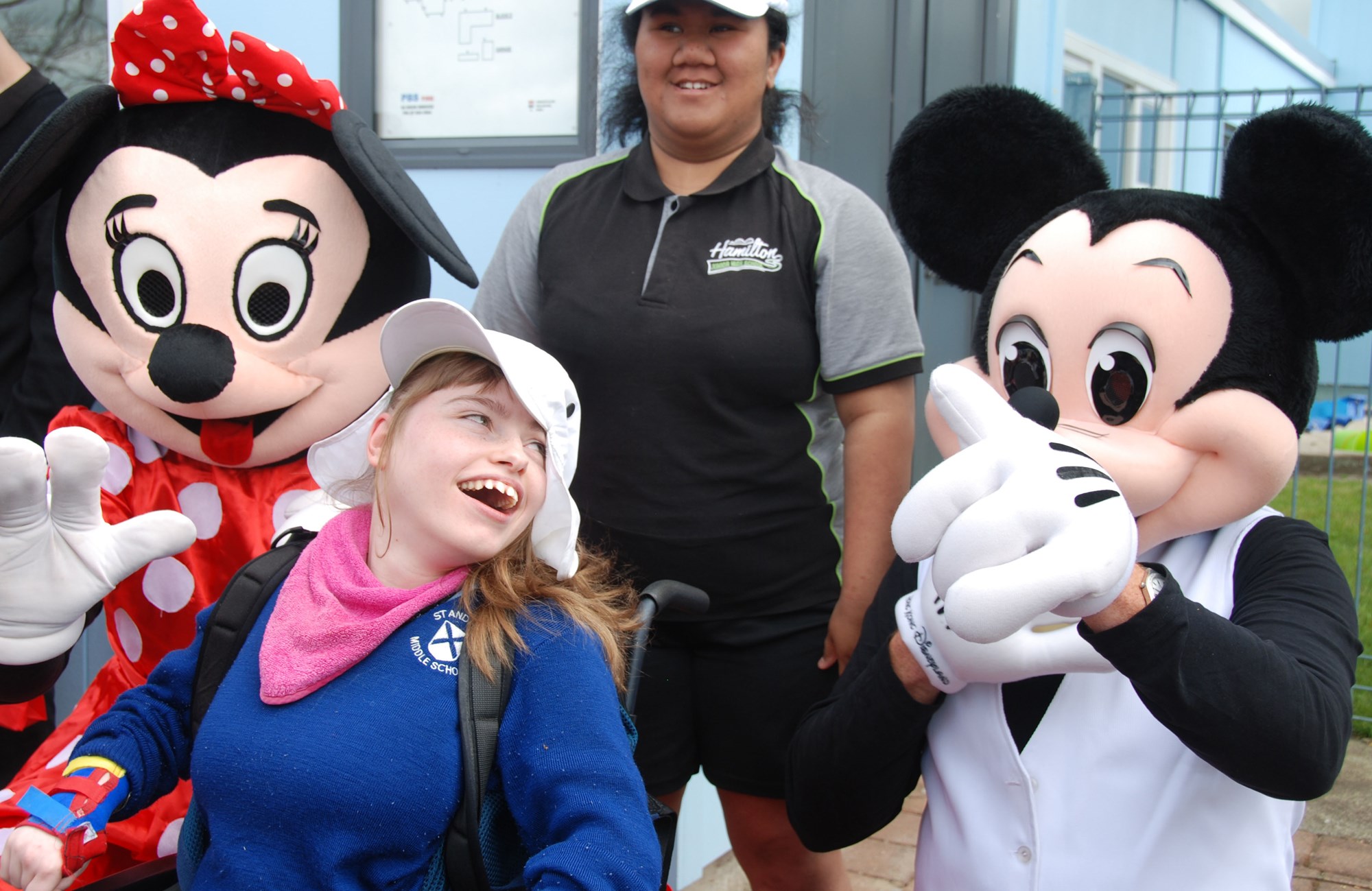 Kids at the 117-pupil Hamilton North School for kids with special needs gets acquainted with Mickey and Mini Mouse. Picture/Jacqui Madelin