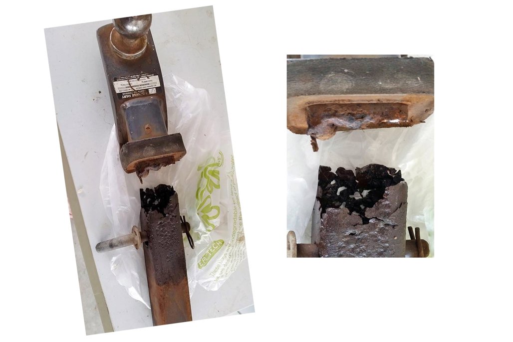 The towbar, shown in the photos, was severely corroded and snapped completely in two whilst in use, but fortunately it happened in a parking lot and not on the open road and there was no other damage or injuries. The severe corrosion is attributed to the vehicle constantly backing into salt water when launching and recovering the boat – which had gone unnoticed during use.