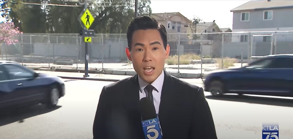 Tooting is heard behind Kang as he says "officials say this is one of the most dangerous streets in all of Los Angeles." Kang then turns to observe the crash in action.