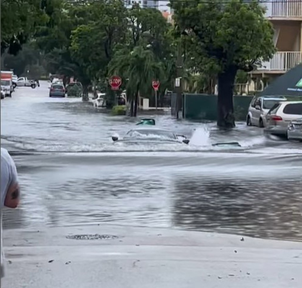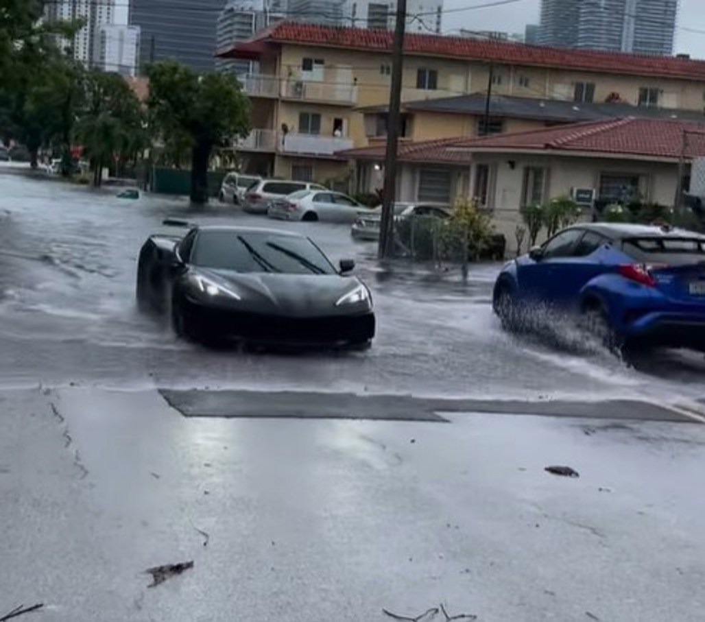 Captured in a video on Instagram from Luis Leyva (@superstrong26), this driver, in Miami, Florida, was seen almost swimming his black C8 through a flooded street. Most of the car is completely submerged, and the driver comes out the other side as if nothing happened.