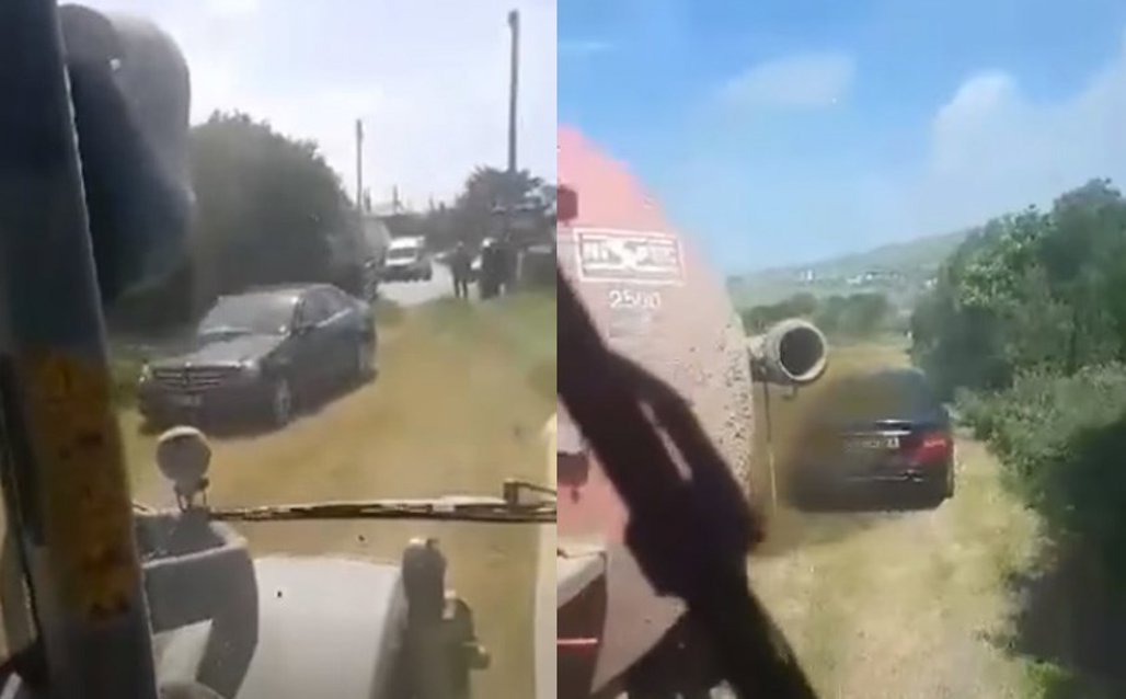 Unfortunately for this driver, the farmer that owns the paddock in Cornwall is obviously sick of people using his property, and decides to get some revenge by spraying the C-Class with manure from his fertilizer spreader.