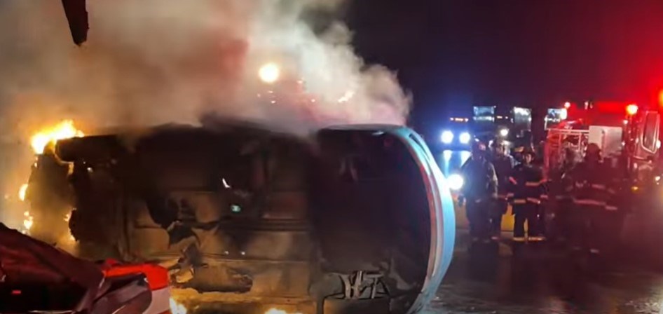 So when I slid to the side of the highway shoulder, the exposed metal posts from the missing metal guard rail from the day before accident, made me slid across the grass shoulder which made me hit my undercarriage across one of the metal posts and it opened up my battery pack underneath the vehicle which immediately set the car into flames.