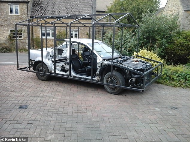 Mr Nicks said he made the vehicle, which he started building after hitting a deer in the countryside, to 'take his daughter to school and pop to the shops', but also to 'do something different'.