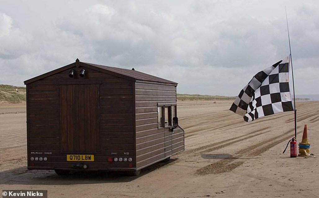 Kevin Nicks, 54, is the creator of the £13,000 'Fastest Shed', which he first tested on Pendine Sands in Carmarthenshire last year, reaching an impressive 80mph (129km/h).