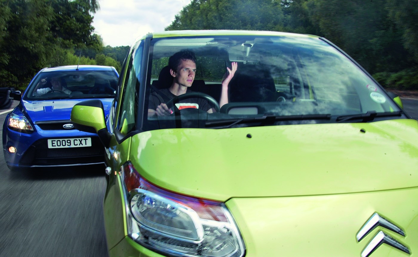 while driving: this includes travelling in the left lane to avoid slow drivers in the right lane, or pulling over when feeling angry