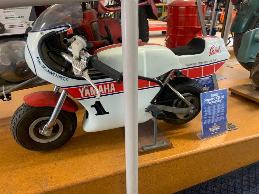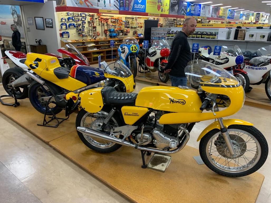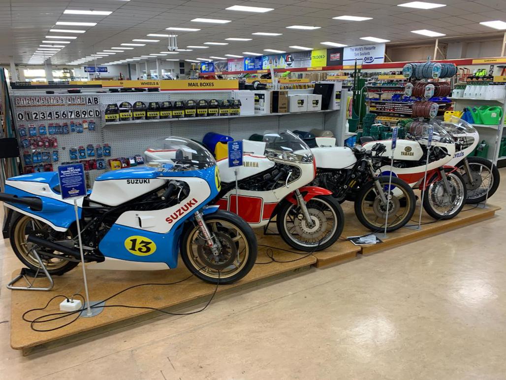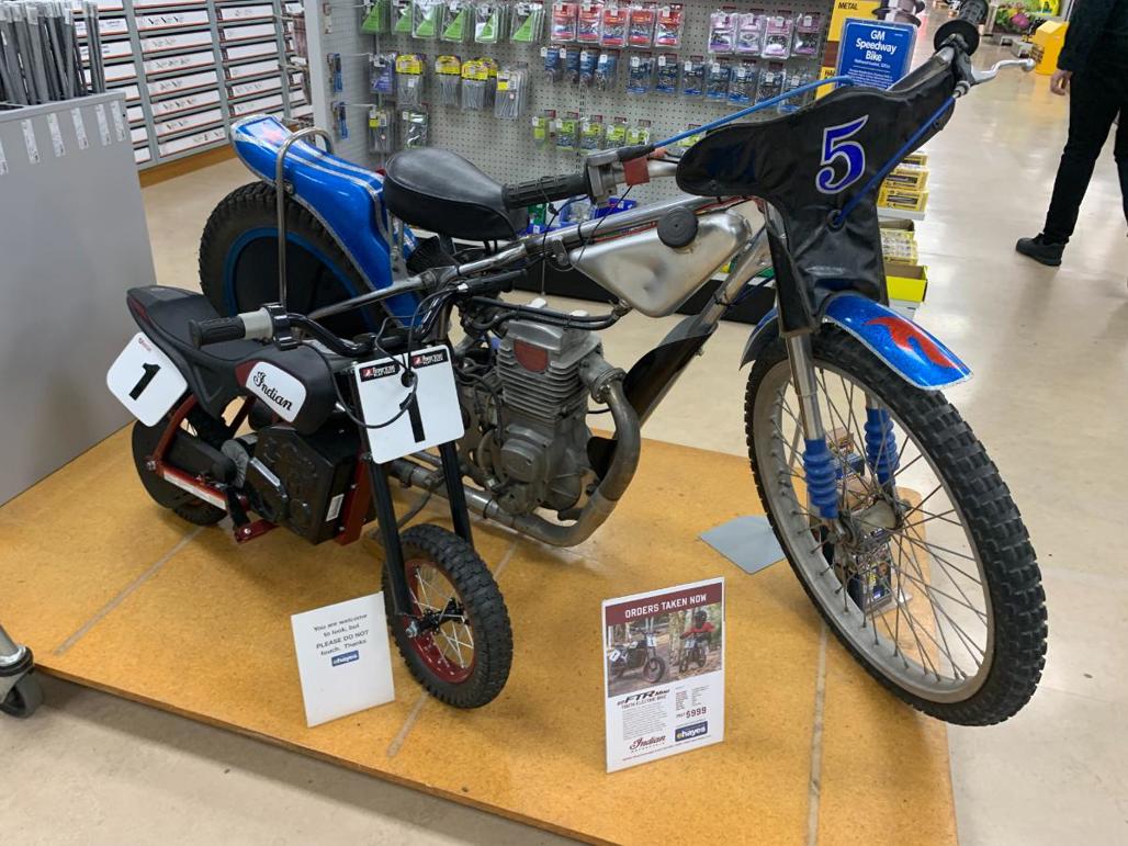 There are road bikes, rotary bikes, speedway bikes – both two and three wheels – a range of shirts and clothing to buy, 1970s and 1980s racing bikes, flat-track bikes and even kids bikes, including Norman Hayes' old Yamaha pocketbike from 1980, and brand new Indian EV bikes.
