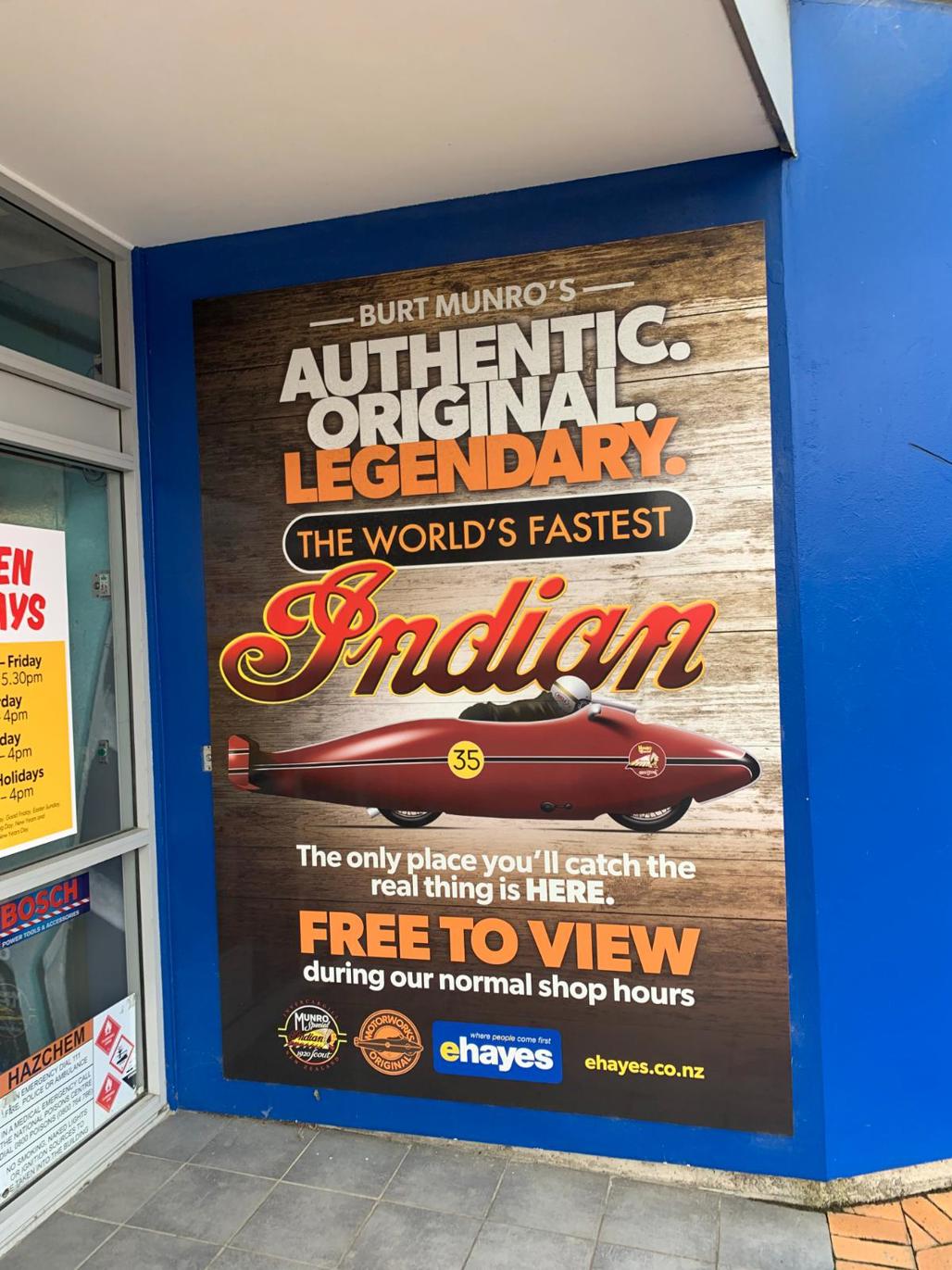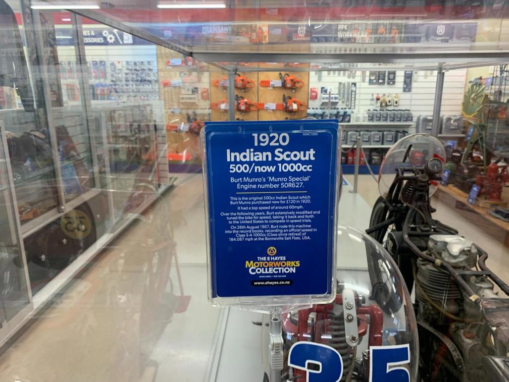 The centrepiece of the store-cum-museum is of course Burt Munro’s 1920 Indian Scout, the original one that Burt sold to the Hayes family in 1977 on the condition that the machines stayed in his beloved Southland.