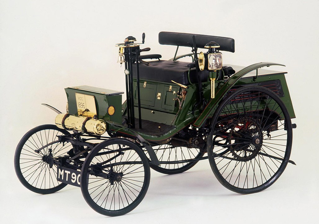 The car in question is a 1896 Arnold Benz Motor Carriage owned by a Mr Walter Arnold. In late 1896 Arnold left his house and stepped into his motor carriage.