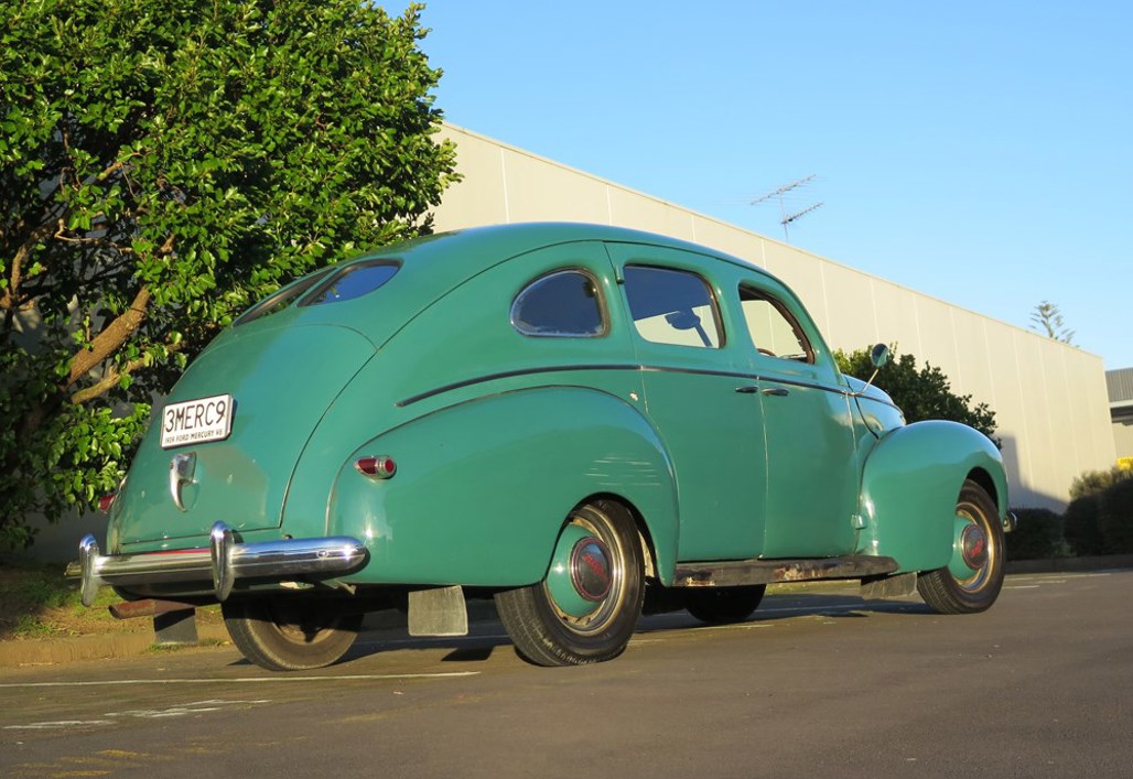It's powered by a 3.9-litre V8 developed from Ford's 3.6-litre Flathead V8, but it uses a unique body. Lucas says Ford and Mercury shared bodies from 1941 to 1948, and with Lincoln after that.