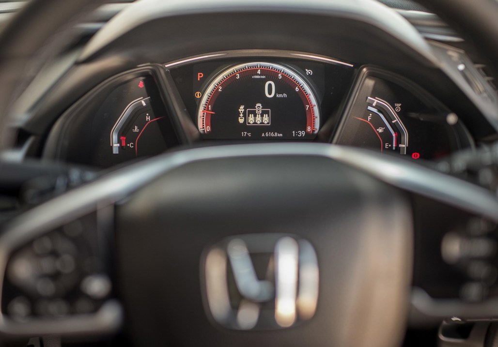 The dashboard is a vast improvement on the previous Civic models. It is modern, roomy and includes a digital speedo that sits immediately in front of the driver, surrounded by a large electronic tachometer.