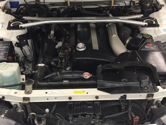 Engine upgrades over the standard R33 GT-R include a new ECU, turbo, intercooler, radiator, intake, exhaust, clutch, strut braces and Ohlins coilovers specially tuned for the R33.