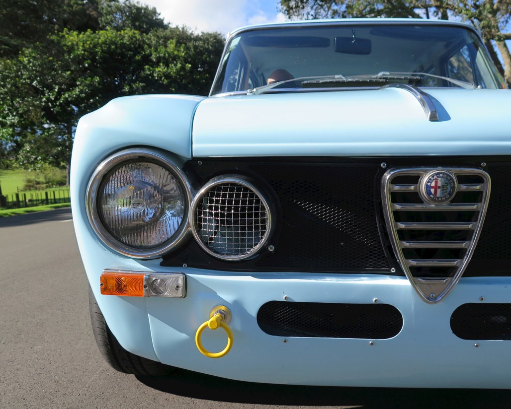 The transmission is the same five-speed manual it would have had new, and the wheels are “repro Alfa TZ alloys, as used in period in special-bodied, beautiful TZ Zagato coupes and the race Giulias. I like the look, and wanted proper fat tyres on it” — fat for the period, anyway.