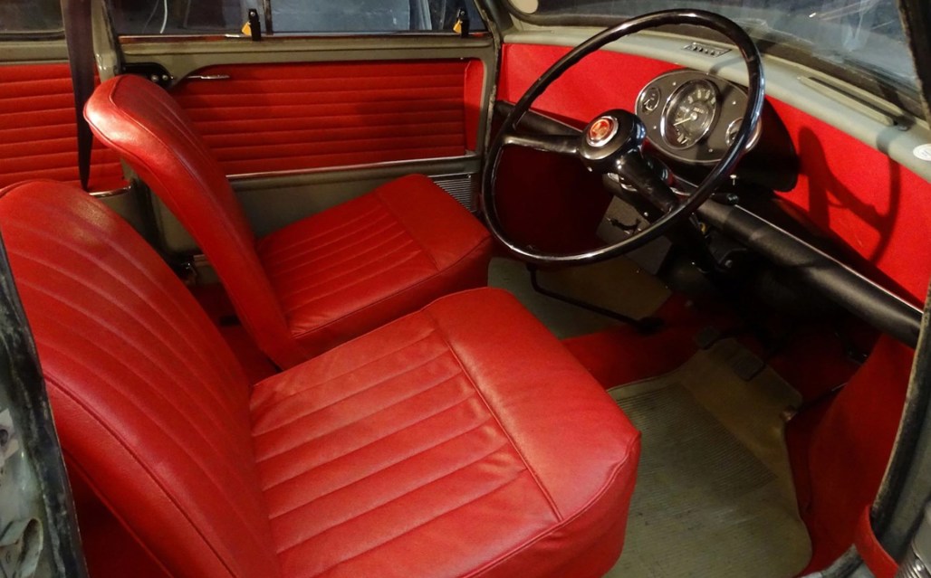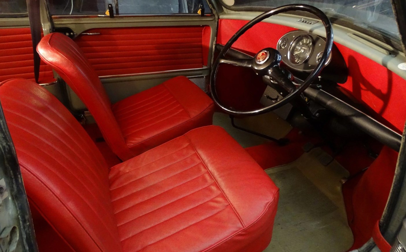 Although the exterior and underneath show the car has been used, the bright red interior is almost pristine. The car is being sold with its original bill of sale, two keys and its handbook.