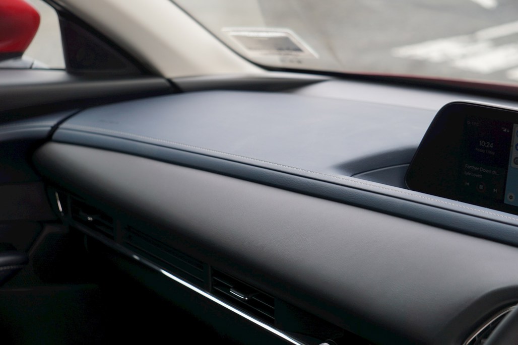 The CX-30 chassis still favours sportiness over a smooth ride. There’s a bit of patter on urban roads, although it’s linear and controlled: a touch firm, but not fussy. And any suspension noise is beautifully suppressed; it sounds more textile than mechanical.