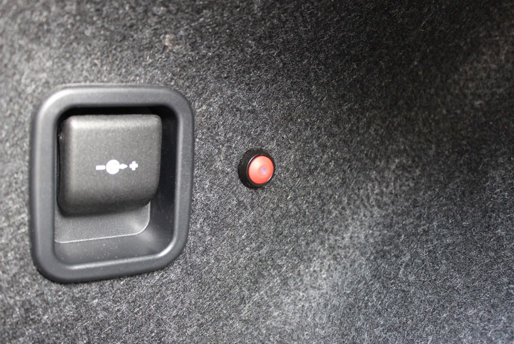 You’ll notice it (or maybe you won’t — it’s small) fixed to the inner skin of the luggage compartment. It’s red but otherwise innocuous. Indeed, it looks like an after-market addition.