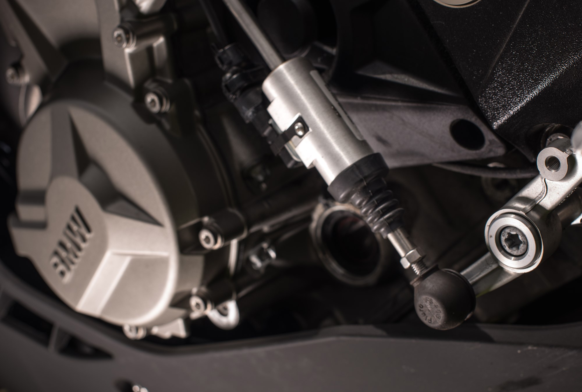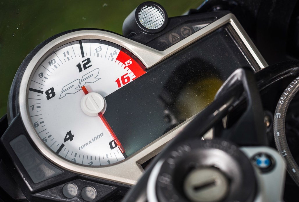 The S1000RR comes with a very tricky bit of kit: a quickshifter (above) that can shift up and down without rider meeting clutch.
