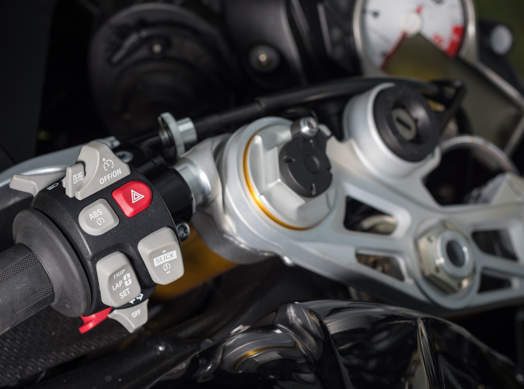 Those insanity-limiting riding aids include ABS, turned off with the push of a button, as well as traction control.