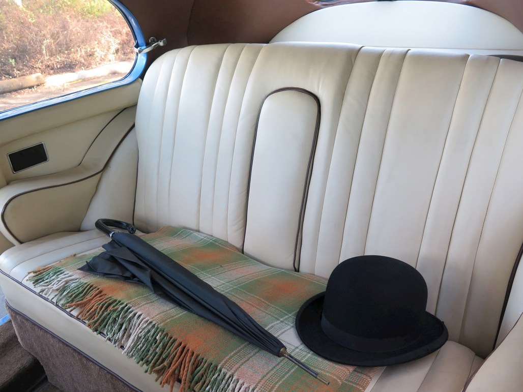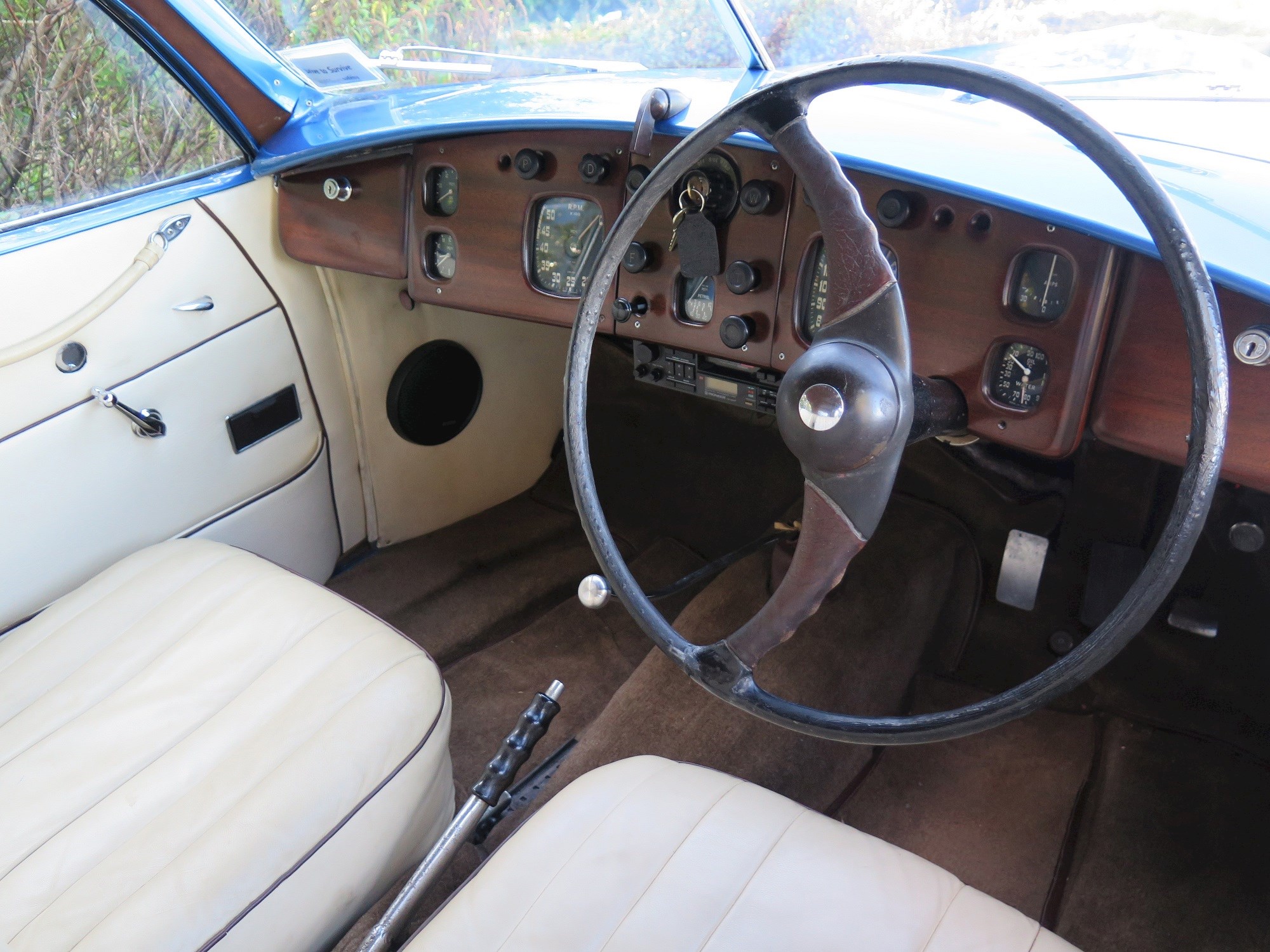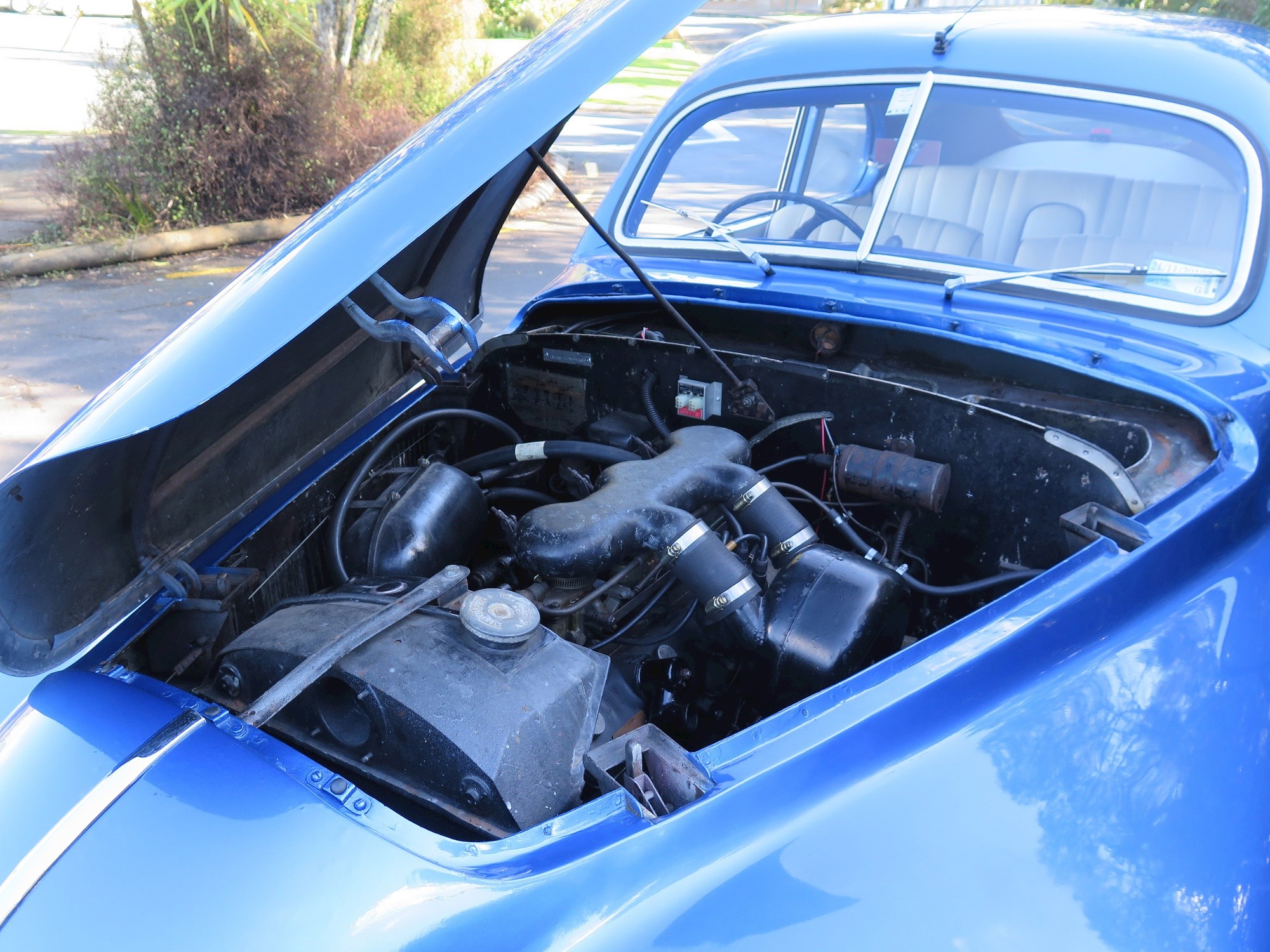 This beautiful car is standard, apart from a modern radio and speakers, a modern petrol pump, and radial rather than cross-ply tyres; its hue is a Honda blue similar to the original. The brakes were converted from drum to discs, which were standard on the 1953 to 1955 cars.