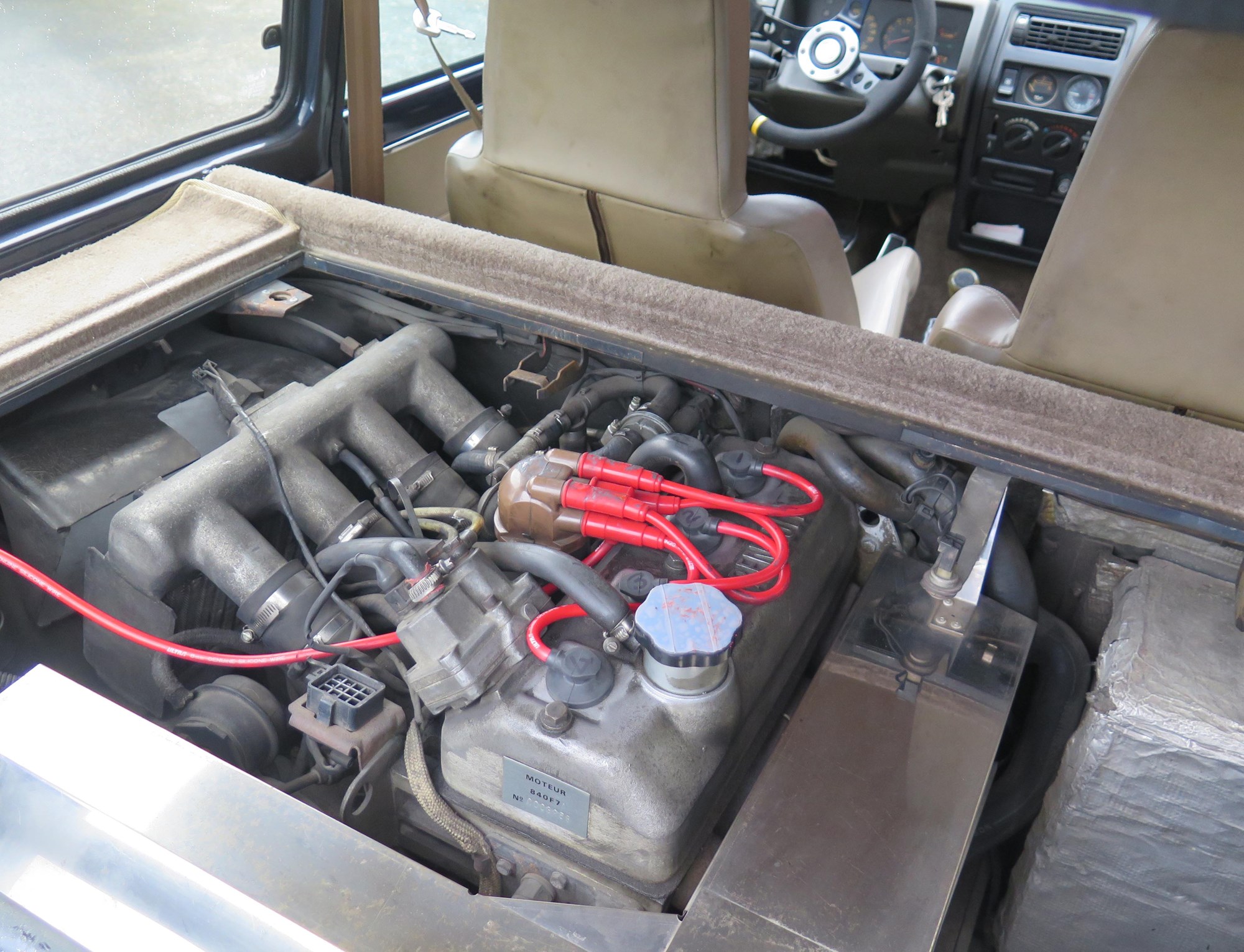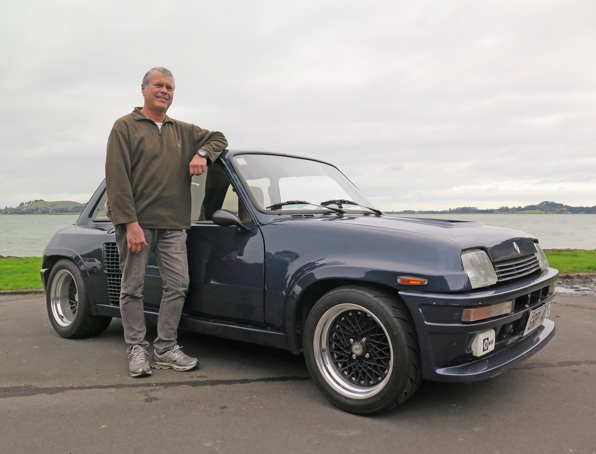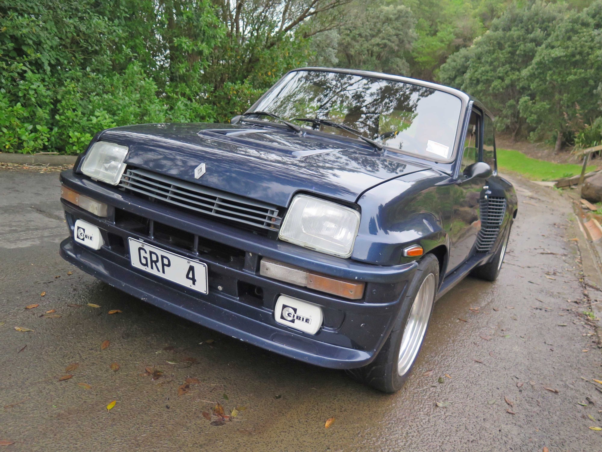 These cars were built in the Alpine factory in Dieppe, all 3576 of them left-hand drive and using a fibreglass bonnet and front and rear mudguards to trim weight. Those rear mudguards flare aggressively outwards — you can’t afford to forget how much wider the tail is when you’re manoeuvring — and its gaping grilles feed air to the intercooler, brakes and engine compartment with an electric fan cutting in when needed. “It doesn’t overheat, it runs cool, and it was fantastic around the Coromandel.”