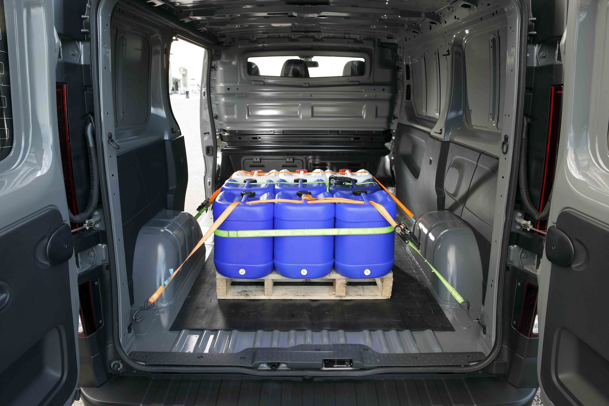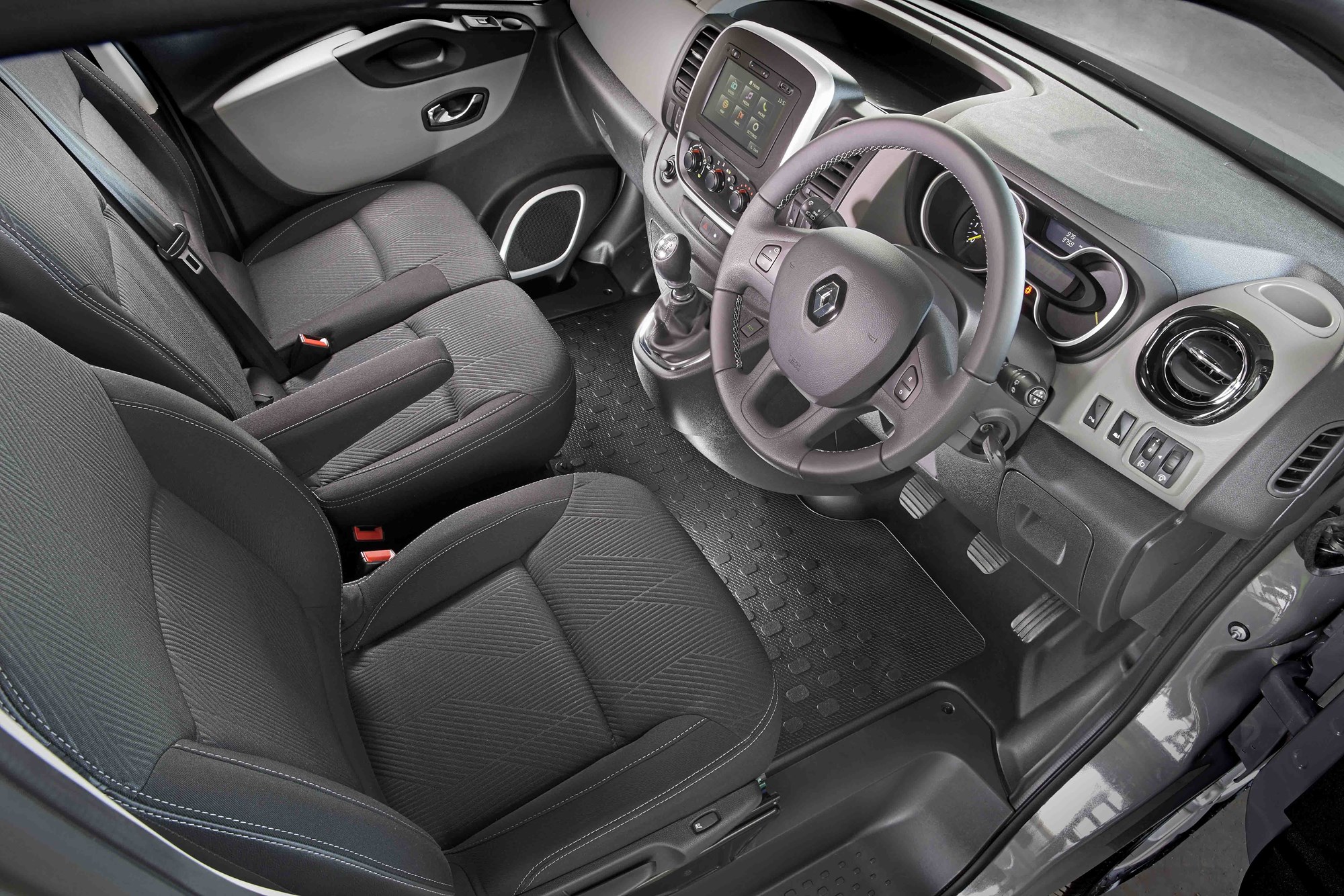 Access is provided by dual glazed sliding doors along the sides and a double-opening barn door at the rear. There’s also what Renault terms a “load trap” that extends underneath the front passenger seat to help stow extra-long items.