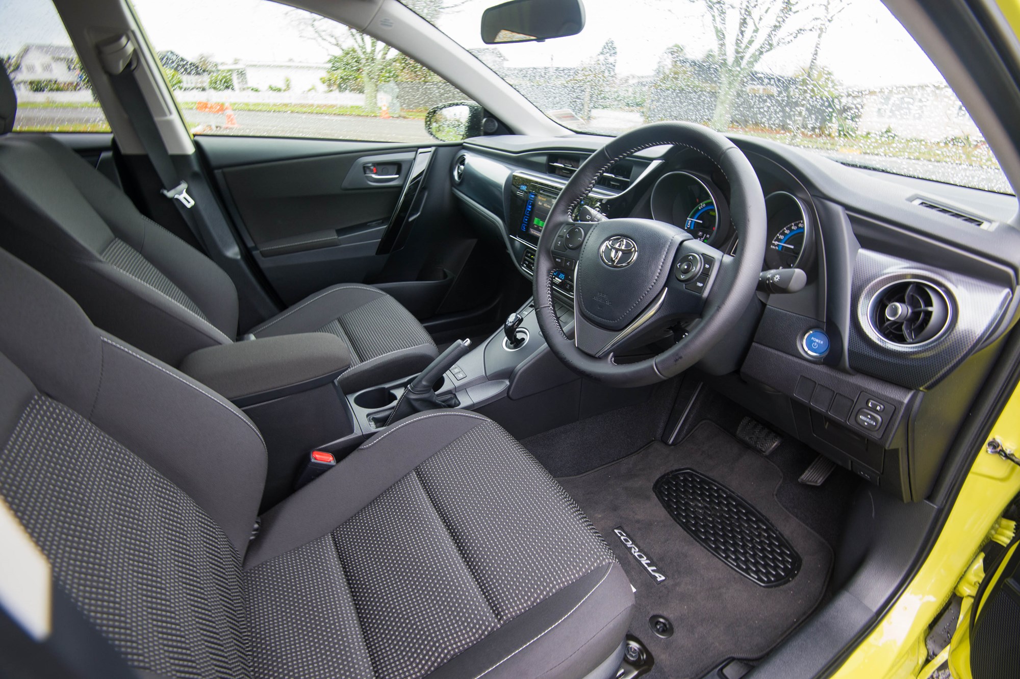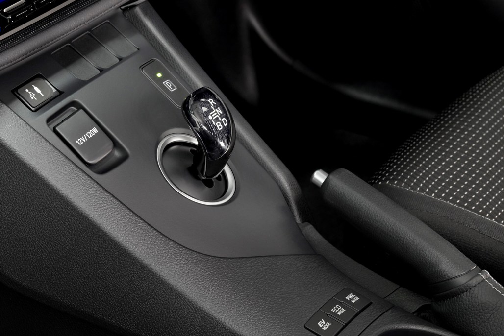 The GLX’s air conditioning system has been upgraded to an automatic dual zone system in the Hybrid. The gear selector is the same resin type as used in the Prius.