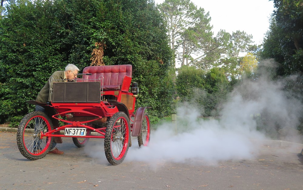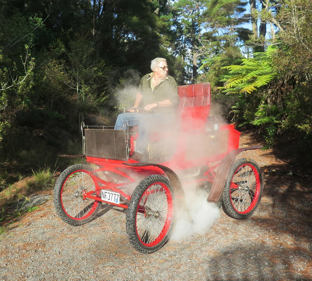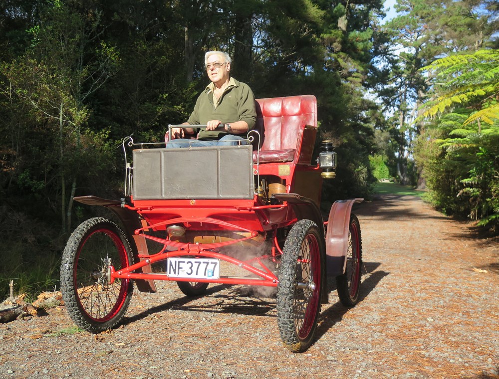 Mr Henning was clearly a character, he also built Auckland’s first speedway track out by the airport – Peter has a 1930s BSA that raced there. The former P&O engineer had all the skills needed to get the Locomobile mobile, and to keep it original, though he suspects the leather mudguards may be replacements. Peter’s the fifth owner – Hennings sold it to Bishop Paterson, who “fried the boiler” and the next two owners, including a scrapyard on Auckland’s Stanley St, had it dismantled in boxes. Ray Tomlin – one of the first vintage car-club members – put it together with Peter’s help, but it didn’t go, and it went up for auction, with a reserve on it.