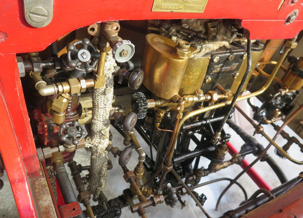 Peter figured he was too busy, but long story short, it was soon his, and he even got the auto apparatus working that adjusts the head of steam. “The biggest deal was to keep it original,” and to that end he negotiated the labyrinthine US patents office, eventually obtaining the steam system’s patent drawings. The result was such a success he says you can now drive it anywhere you can source regular top-ups of fuel (petrol) and water, it’ll go around 50km per 120-litre tank of water and almost 100km per 18.9-litre tank of fuel, further when it’s hot: Peter’s driven it to Wellington, presumably with canisters of liquid strapped all over it, considerably adding to weight – it tips the scales at 447kg wet, says the brochure specification, which listed a rubber bucket for filling the water, tools and a sidelamp as standard features for this heavy runabout, with extra-wide seat and larger water capacity than the standard model.