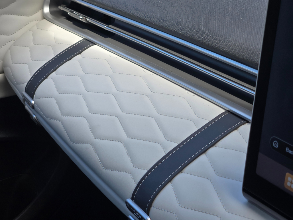 It comes with quite a few surprise-and-delight features like automatic parking, flush door handles, frameless doors, lie-flat front seats so you can nap while you recharge, power adjustment/heating/ventilation/memory for the driver's chair (including a welcome function that slides it back for ingress), 50W wirelesss phone charger with cooling and 32-colour ambient lighting.