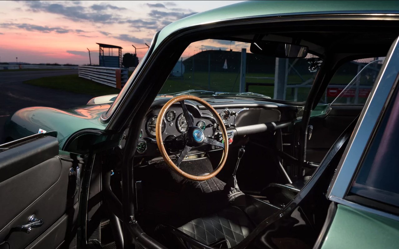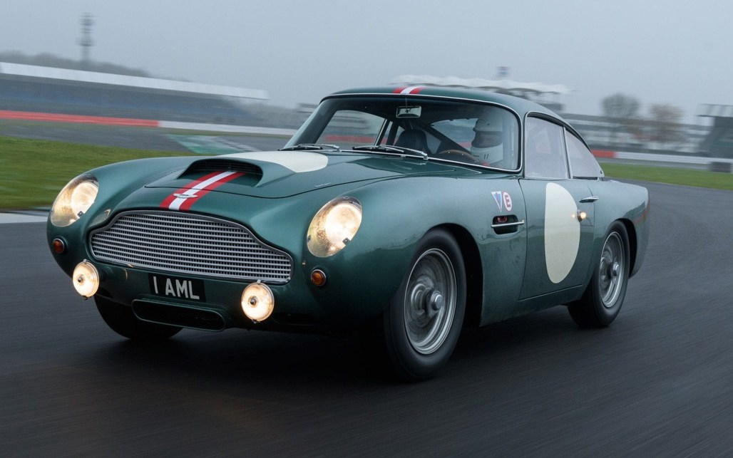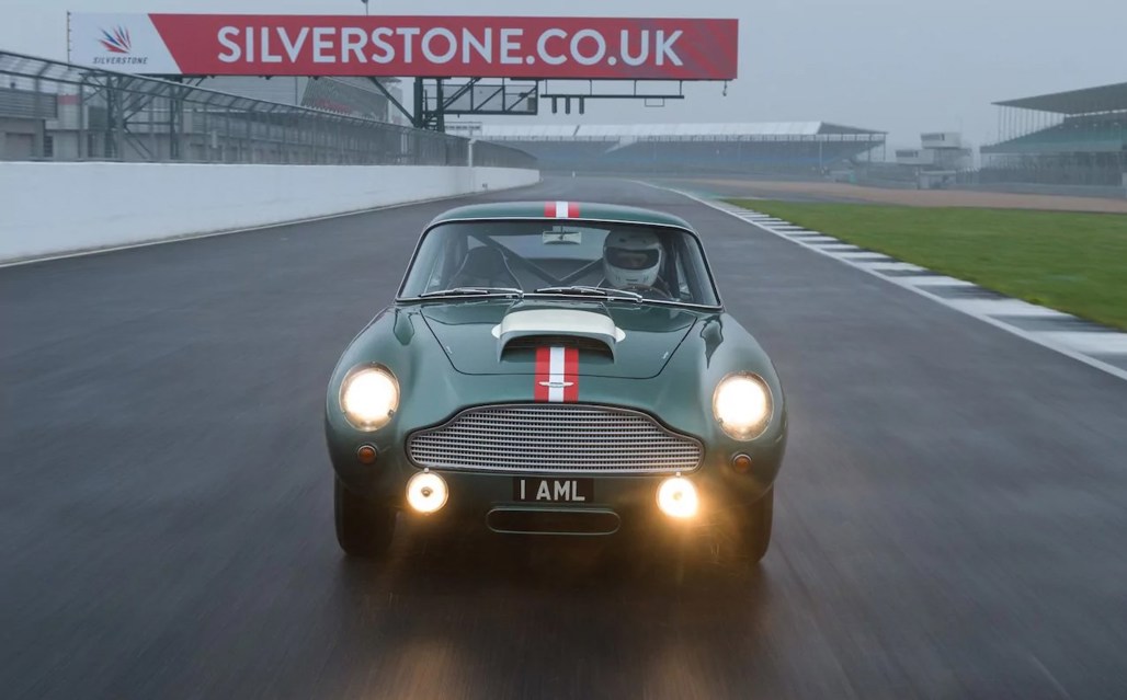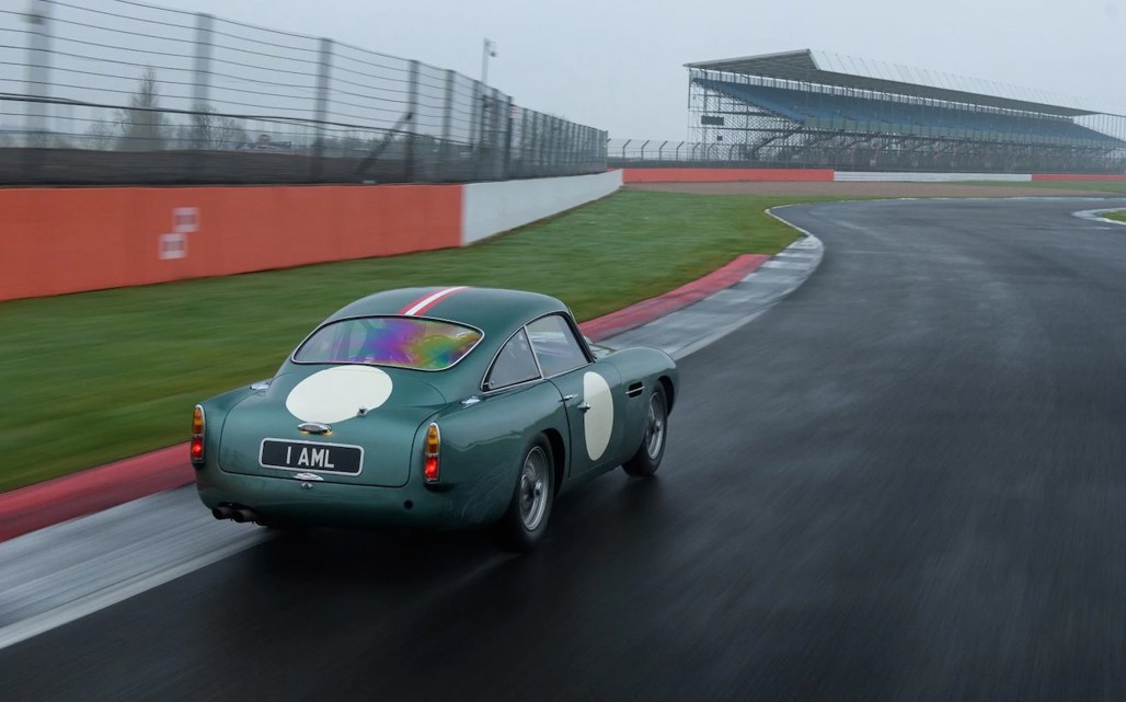 I'm sitting in one now, a new/old car, beautifully made at the original factory in Newport Pagnell. Snug in a modern racing bucket seat and a full harness belt, staring down at an array of full-deflection gauges and then out through the windscreen at a wet and lonely pit lane at Silverstone, the place where the original DB4 GT made its competition debut almost 60 years ago. Stirling Moss drove it at the International Trophy meeting here on May 9 1959.