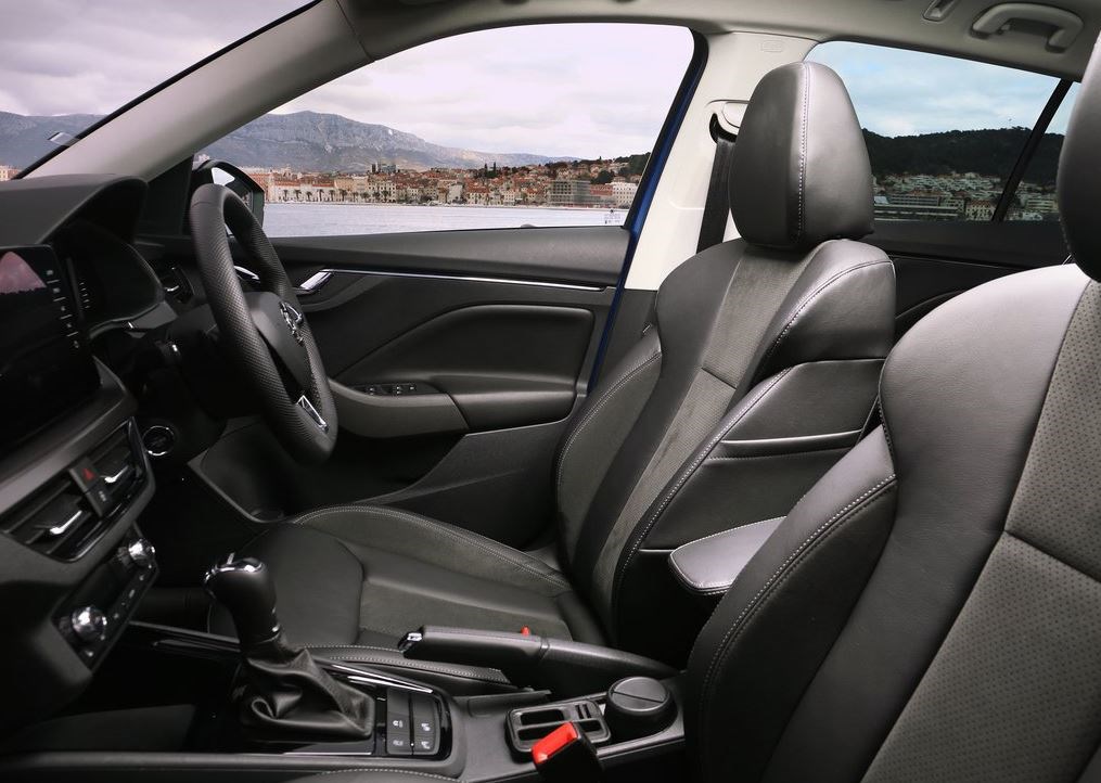 The interior of the Scala is full of soft touch materials and the dashboard has clean lines while the infotainment system is easy to use.