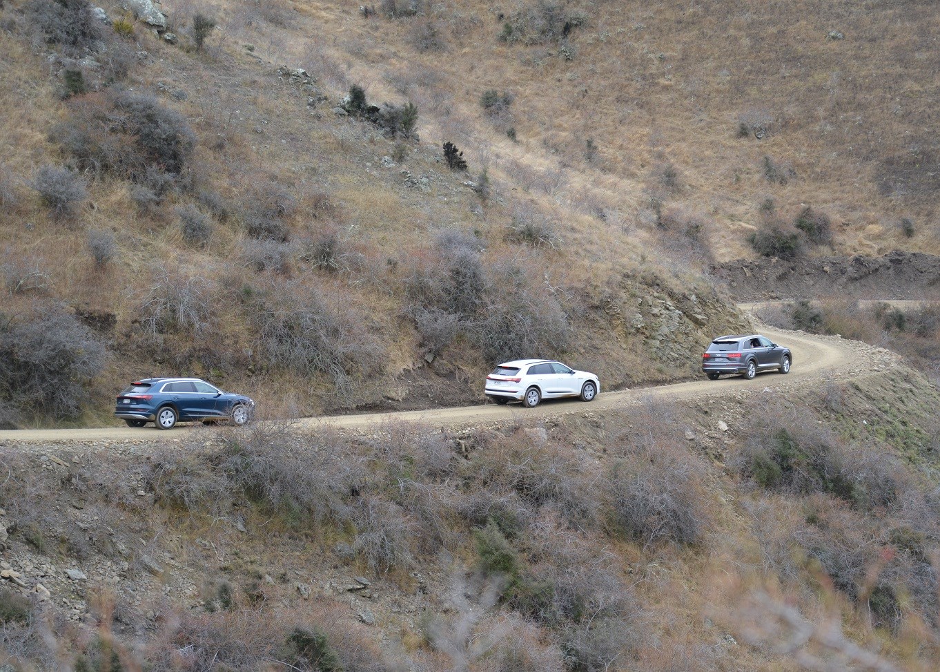 Signposted as ``Not Suitable for Cars’’, it’s a twisty run on lightly gravelled and narrow tracks that traverse deep gullies and pass rocky outcrops while climbing steadily before a sharp descent into the town of Clyde. As a rough road and loose surface – rather than offroad - test, the e-tron felt as confident as any accomplished conventional SUV.