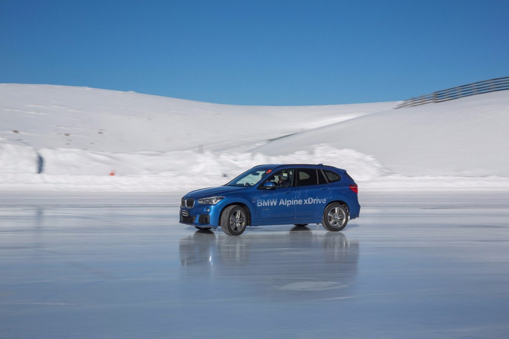 Perhaps it has something to do with the X1’s compact crossover SUV nature — or its significantly lighter kerb weight — but finally I start to get it; steering into the drift, remaining focused on the next marker rather than the deceptively solid snowbank to my right, easing the power on and off to maintain the right angle.