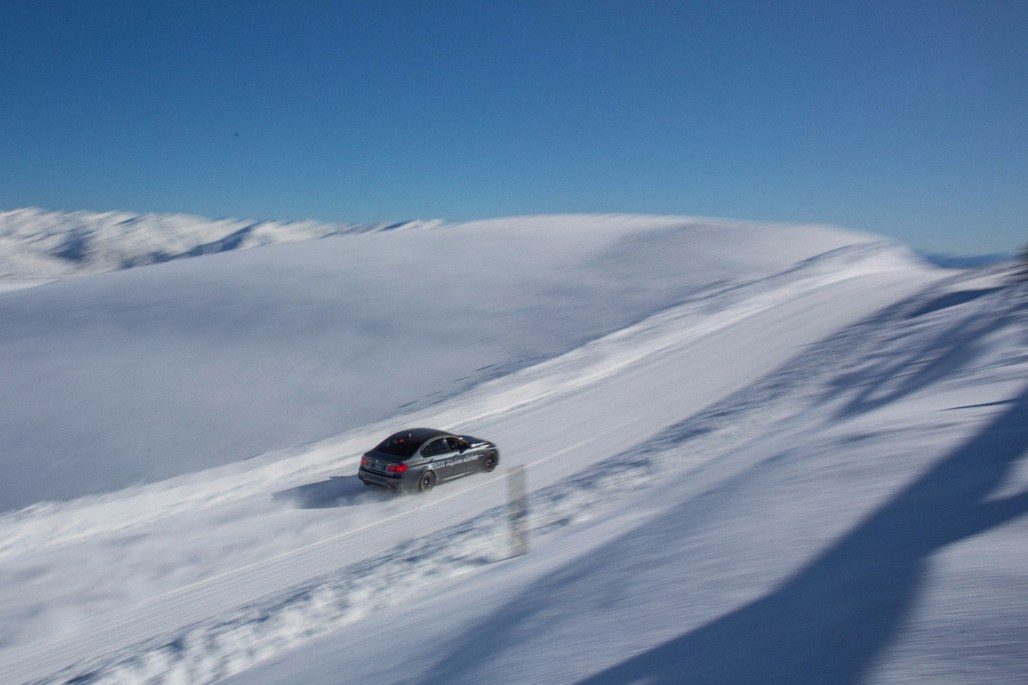 After spending the night at Millbrook Resort in Arrowtown, paying participants from all walks of life (but mainly “enthusiast driver” ones) travel by helicopter to the Crown Range to drive around some of the SHPG’s handling tracks, experience what it’s like to (safely) lose control on ice, attempt the aforementioned drifting and, finally, go for the coldest hot lap with performance driver Mike Eady at the wheel of an M3 sedan (on snow tyres, natch).