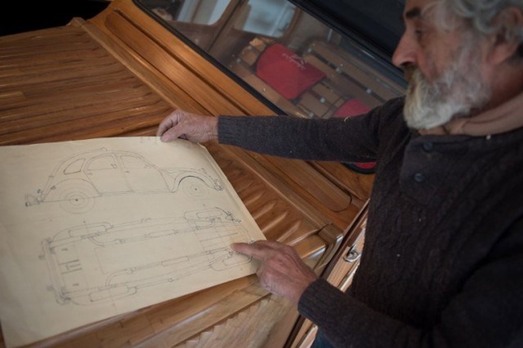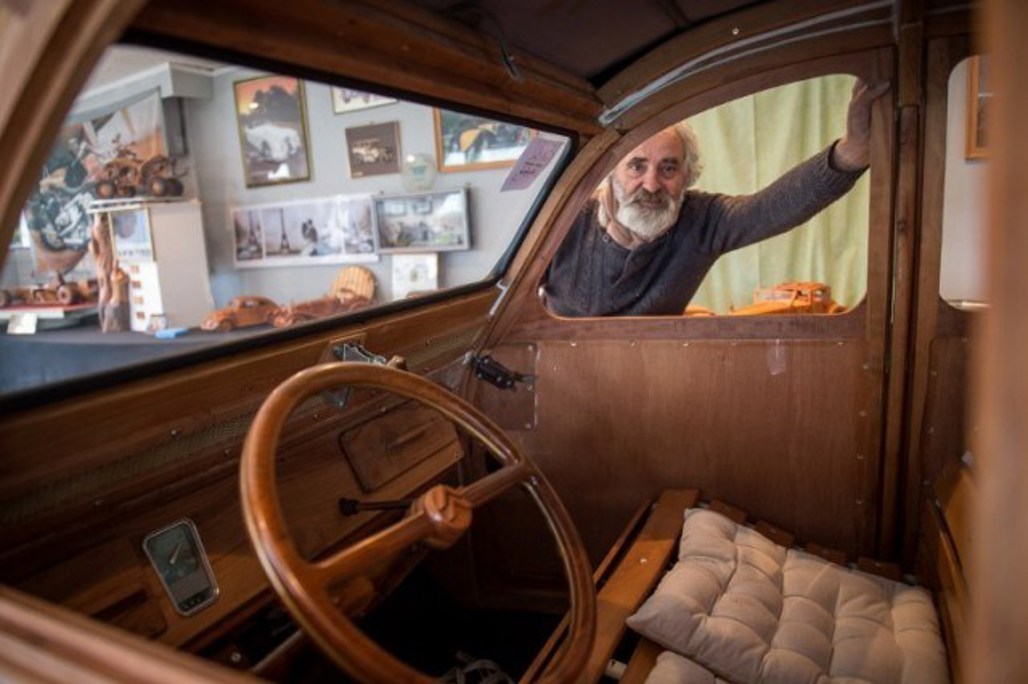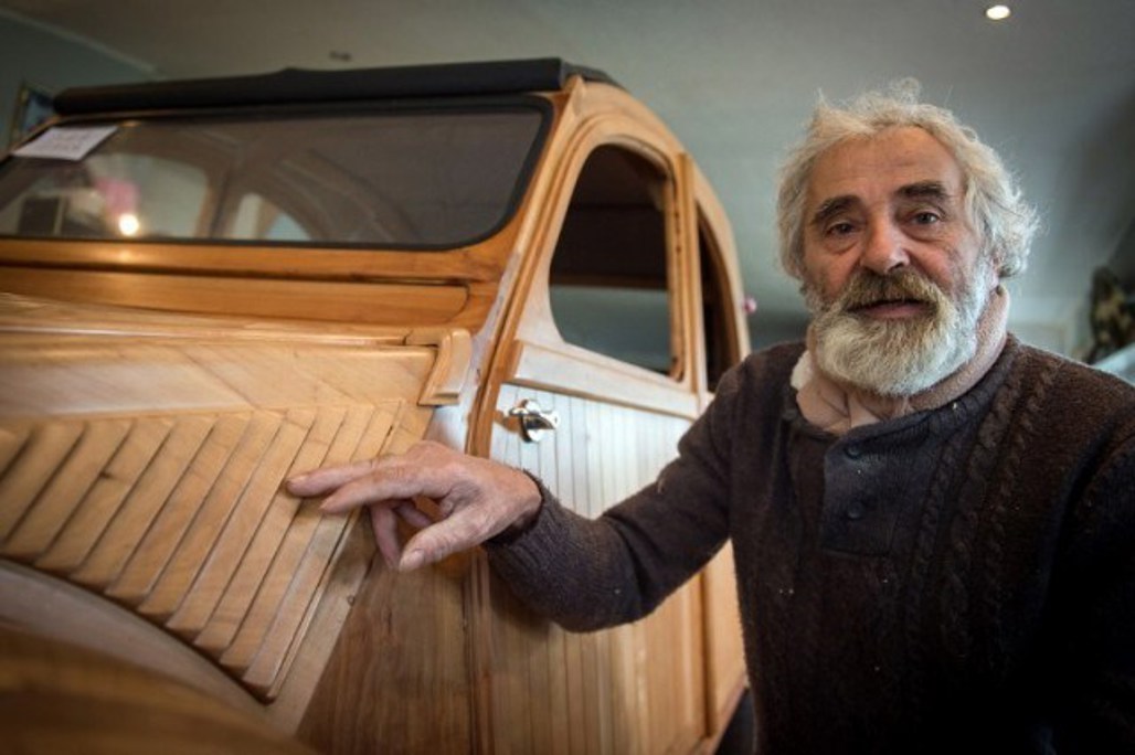 Michel Robillard with his wooden Citroën 2CV. Photos / Guillaume Souvant