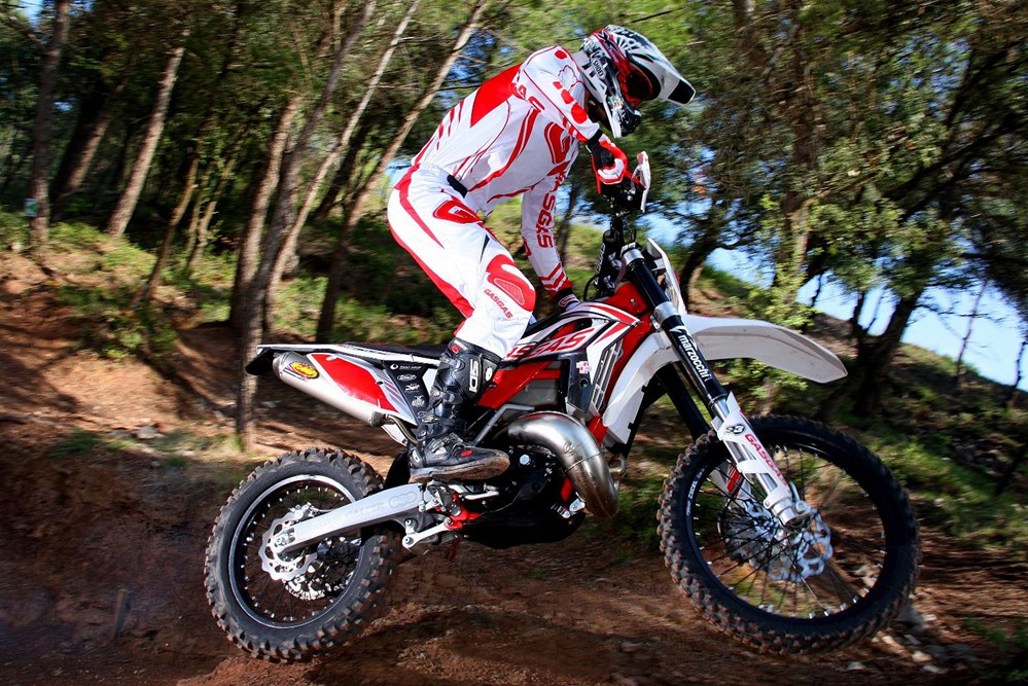 The exhaust’s been redesigned, there’s a new silencer, and alterations to the suspension include new settings for the Marzocchi forks and a change to Reiger shocks, which got the thumbs-up too. “It’s now plush, absorbs roots nicely, and it’s confidence-inspiring.” Our tester said it felt as if it’d work well in sand too, “It felt balanced enough to work anywhere, if it works well with poxy roots and doesn’t bottom when you’re going fast it’ll go well in sand.”
