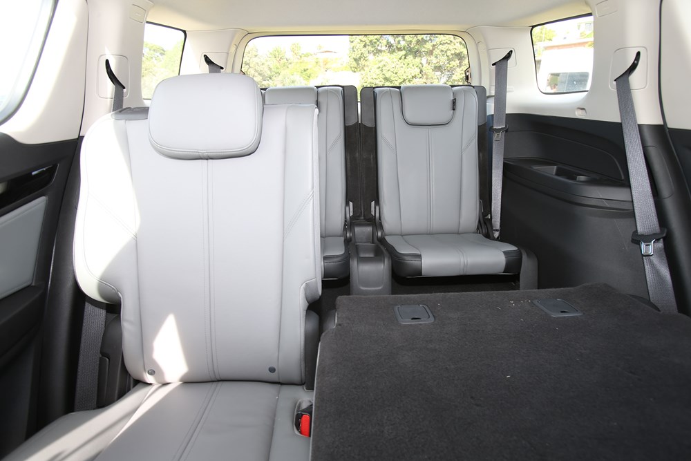 There’s good second row passenger headroom with generous footwell space and a slightly raised centre seat position. The second row seat is in a 60/40 split arrangement for both the backrest and cushion and tumbles forward for access into the third row. Two Isofix attachments and three tether points are provided for securing child seats in the second row.