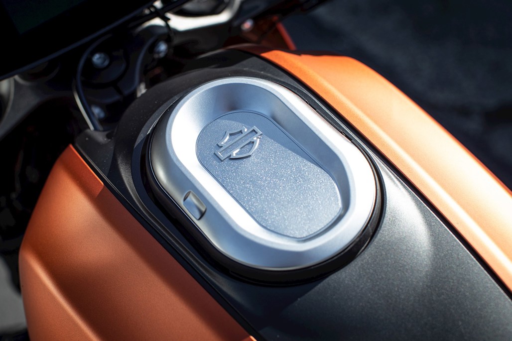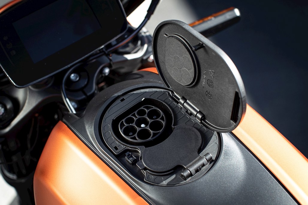 A nice touch in the design of the bike is how Harley chose to use the faux fuel tank to house the charging ports for the bike, which retains some familiarity with motorcycling convention.