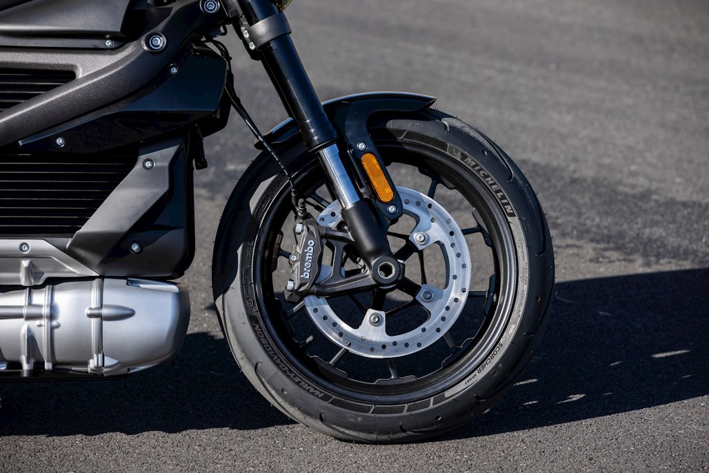 Dynamically the LiveWire is the sportiest ride from Milwaukee in a very long time. With a Streetfighter style riding position and no exhaust to get in the way, the bike can lean up to 45 degrees on each side, while the factory fitted Michelin Scorcher tyres do a surprisingly good job of keeping that tremendous burst of instant power in firm contact with the ground.
