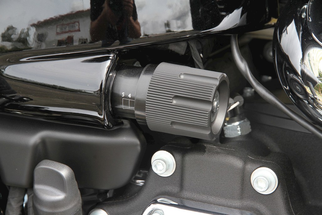 The Glide aspect of course comes from the new Softail family chassis, which when combined with a thin – by Harley-Davidson standards – 180 section rear tyre really makes for a bike that is as easy to tip in as it is to sit on and look cool.