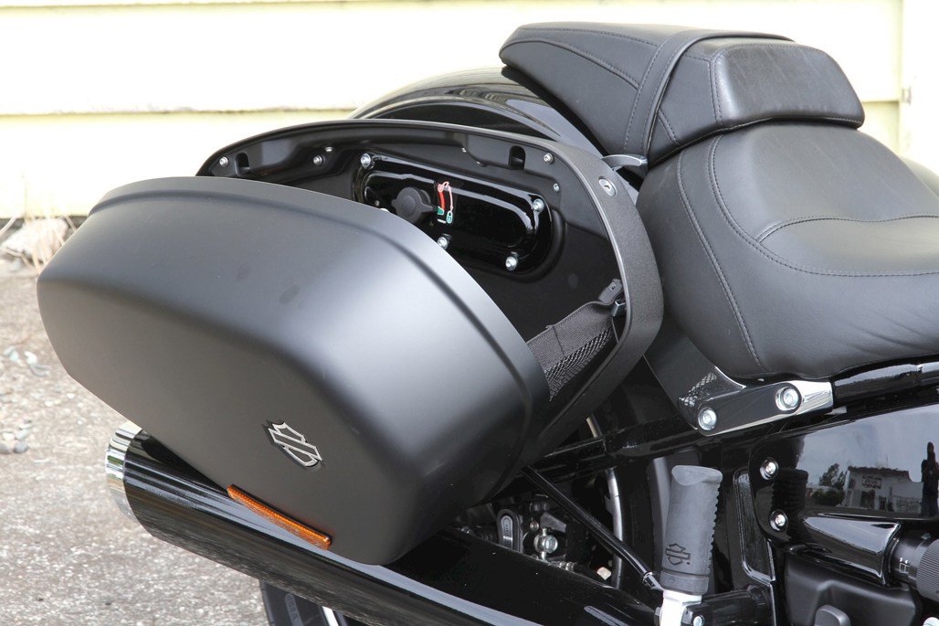 The trick to it is in its mini-fairing – well, that’s what Harley call it – and saddlebags. While detachable saddlebags are nothing new, a detachable fairing isn’t something we’re used to, but all it takes is undoing two clamps on the big USD forks and it pops right off exposing the traditional cool that is an exposed circular headlight.
