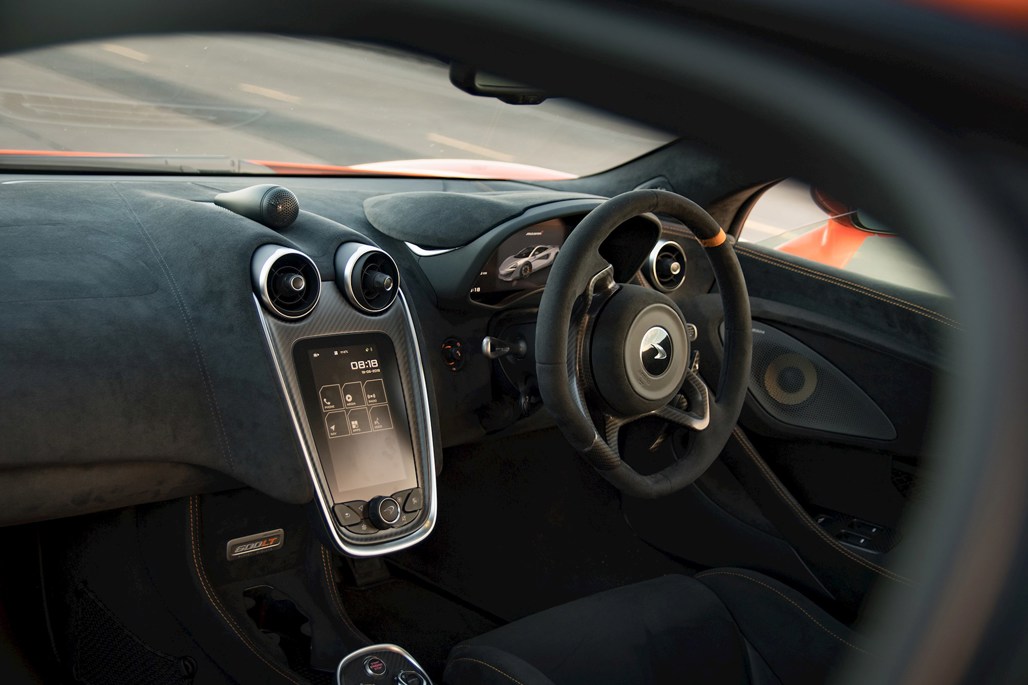The interior doesn’t look a lot different from the 570S either. Among the few differences are standard fixed-back seats (borrowed from the P1), which make for a slightly awkward tilted driving position at first. But, you get used to it.