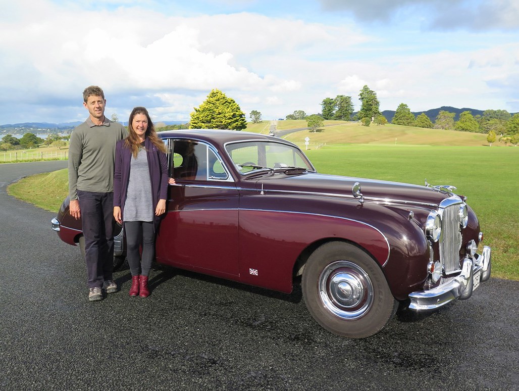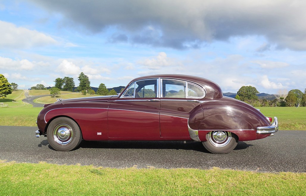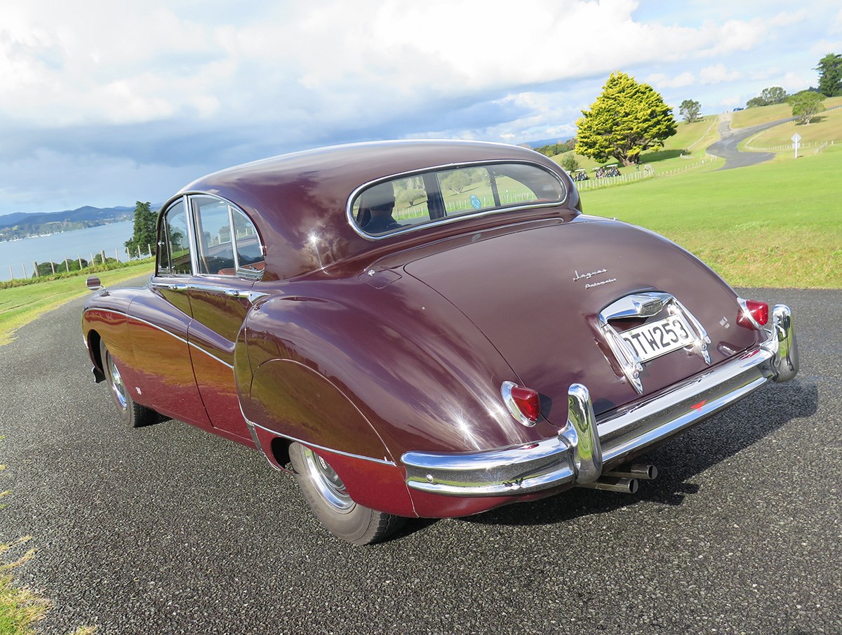There’s no missing this 1958 Jaguar MkVIII as it wafts down the Paihia waterfront. Those flowing lines just ooze elegance, and heads turn as it pulls over to collect me.