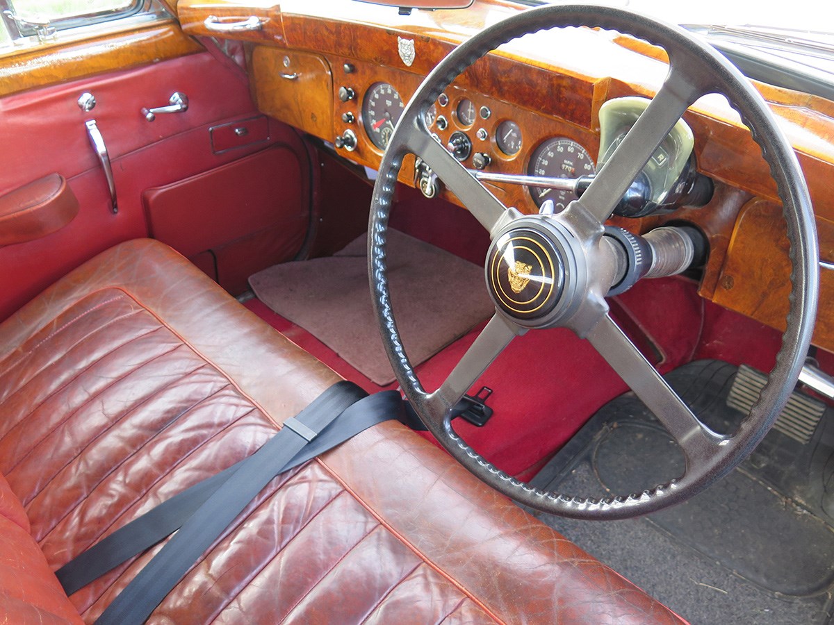 This powerful 3.5-litre six-cylinder motor was launched in the XK120 in 1948, and appeared in its replacement, the XK140. Perhaps that’s why the front passenger also gets a solid wooden grab-handle.
