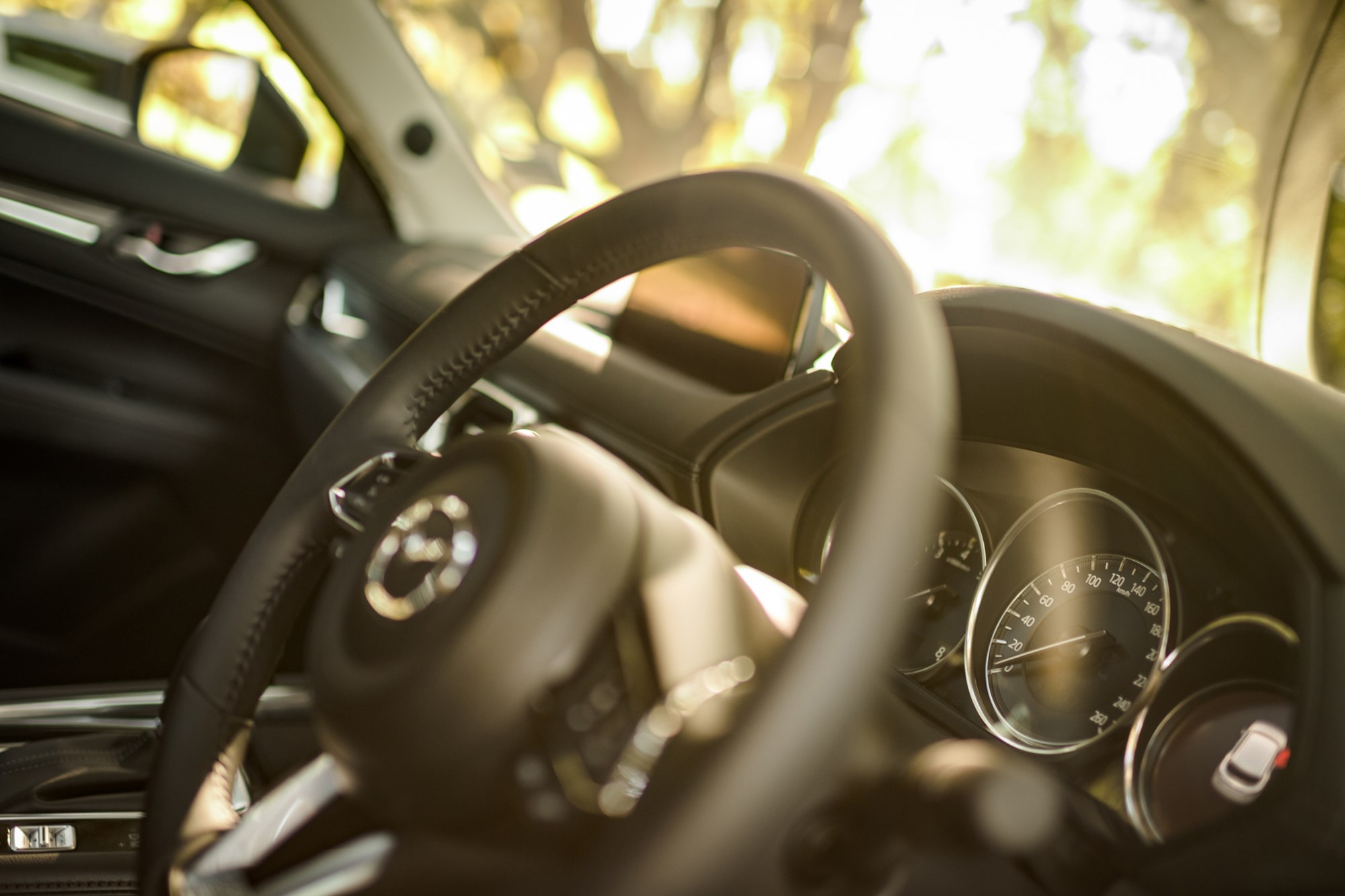 The CX-5 has similar aspects as the CX-9, in particular the driver-focused cabin, while the clean lines on the dash, small air vents and the floating infotainment screen gives the interior a quality feel.