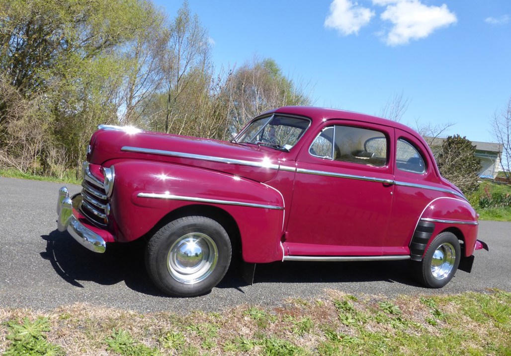 The coupe was designed in 1941, but Ford halted manufacturing on February 10, 1942, to concentrate on war production. It resumed in July 1945, building a car almost identical to the pre-war model, but with a horizontal grille.