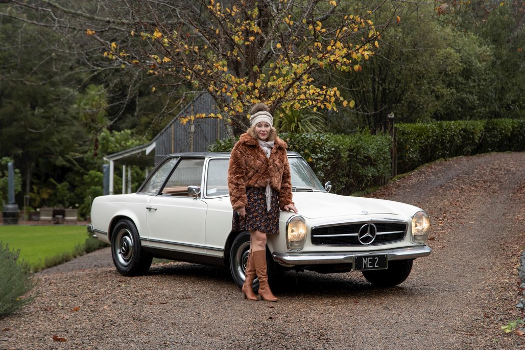 Michelle Heath drives a 1965 “Pagoda” roof Mercedes-Benz SL230. It’s coming up for auction at Webb’s on June 27.