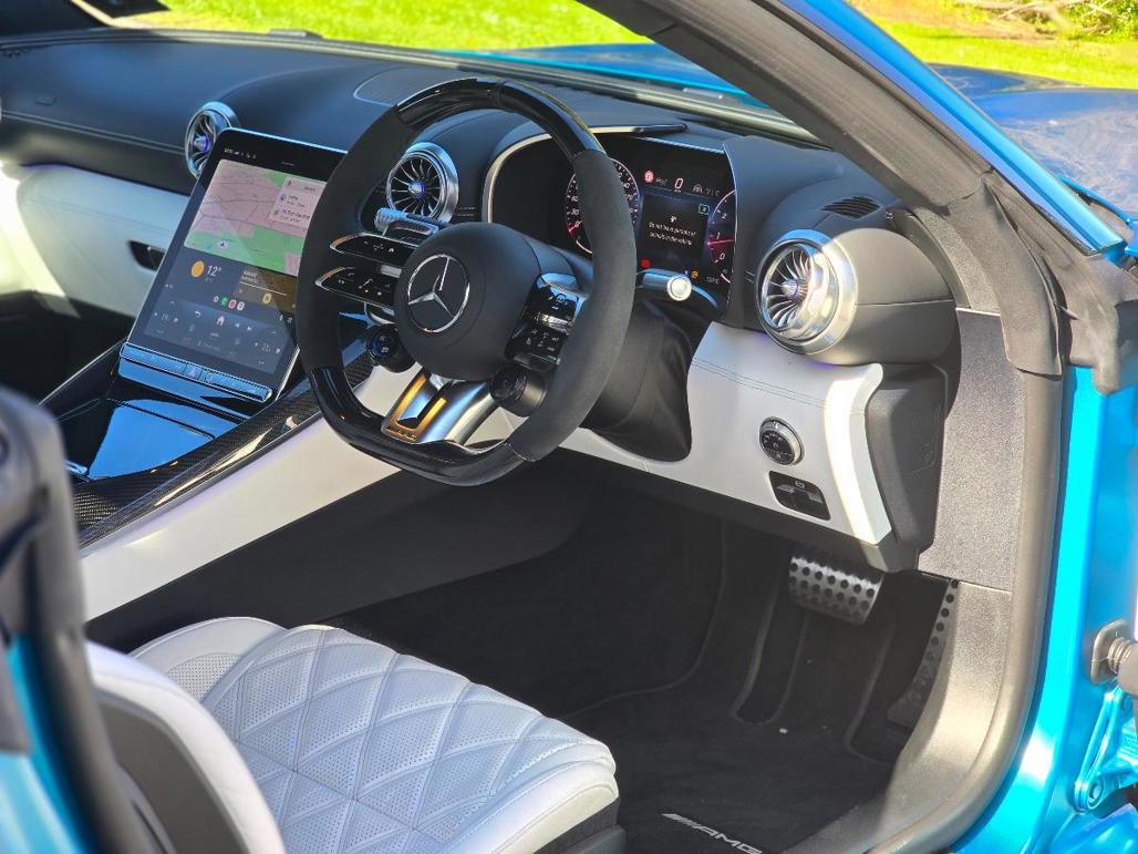 The suspension is lowered by 10mm, and the AMG active ride control adjustable suspension setup is standard, as is the panoramic sunroof. You also get four-wheel steering, allowing the rear axle to turn when cornering, and of course, it’s all-wheel drive.