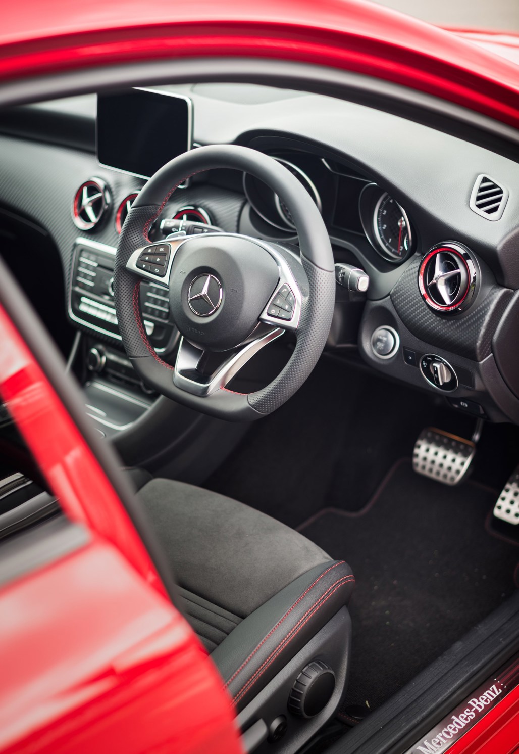 The test vehicle also had the option of 19-inch AMG multi-spoke alloys in black over the standard 17-inch alloys found in the A180 base model.