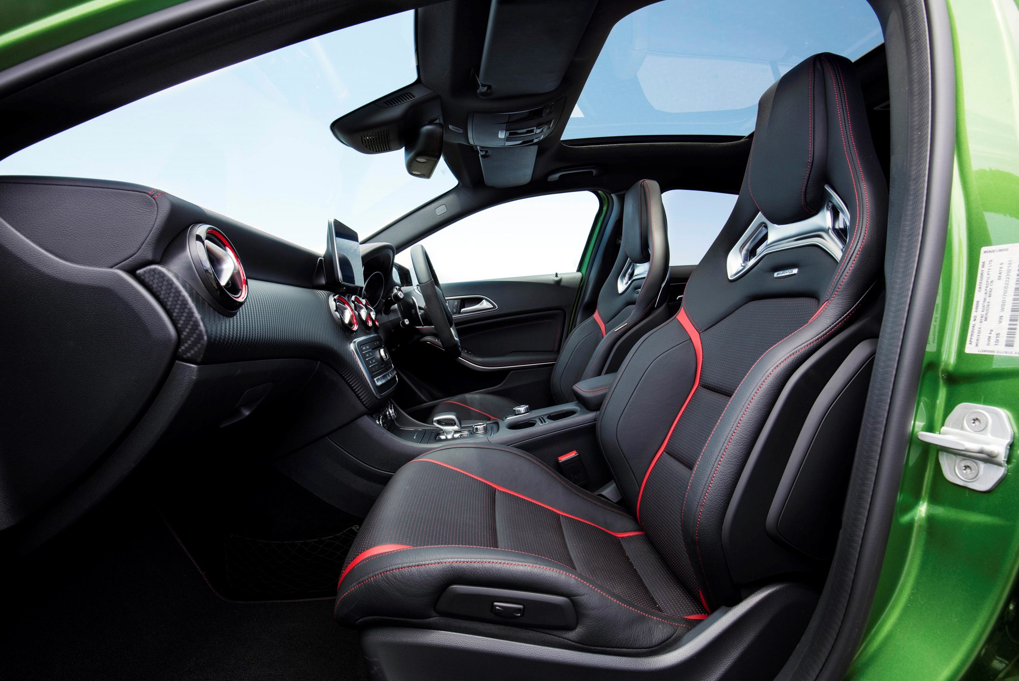 And no, that love-it-or-hate-it metallic green hero shade dominating the company’s marketing efforts (known as Elbaite in Mercedes-Benz parlance) isn’t standard on the Mercedes-AMG A45 4Matic. Might we suggest Jupiter Red or Mountain Grey Metallic instead?